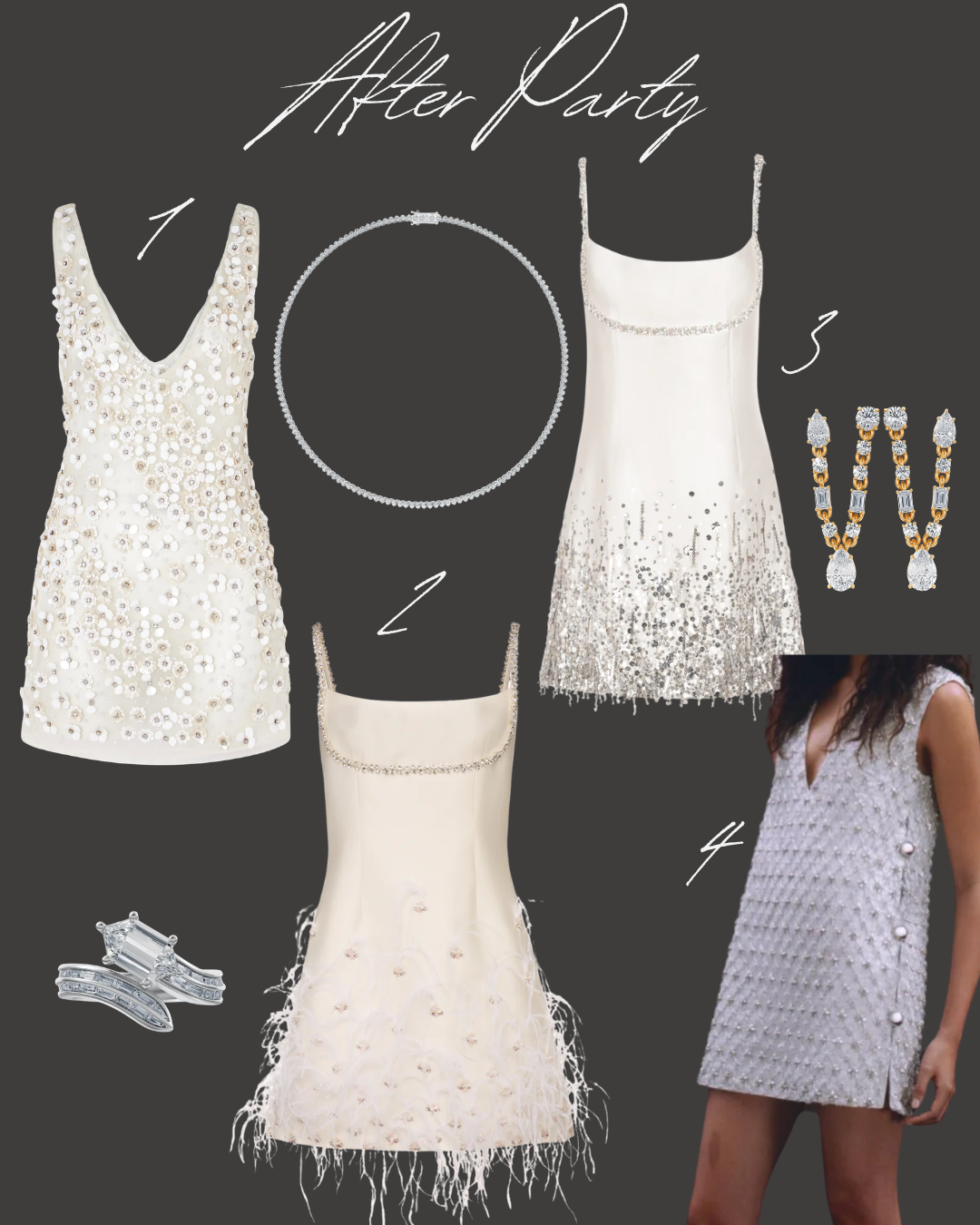 Layered diamond necklaces, a bold cocktail ring, a dramatic ear moment, or a modern stack that catches the light on the dance floor all feel right at home here. The after-party is less about tradition and more about energy, movement, and celebrating in a way that feels fully like you.