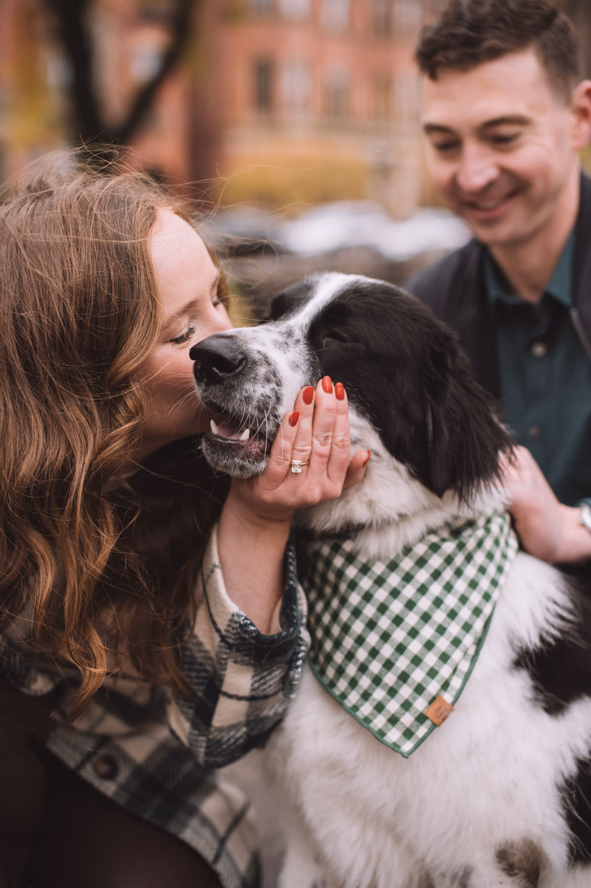 The proposal was just as special as that initial appointment. Under the pretense of a "Christmas card photoshoot" for their beloved dog, Miley, Matt planned the perfect moment to pop the question. Bridget had always wanted photos of Miley for the holidays, making this the perfect cover for his surprise!