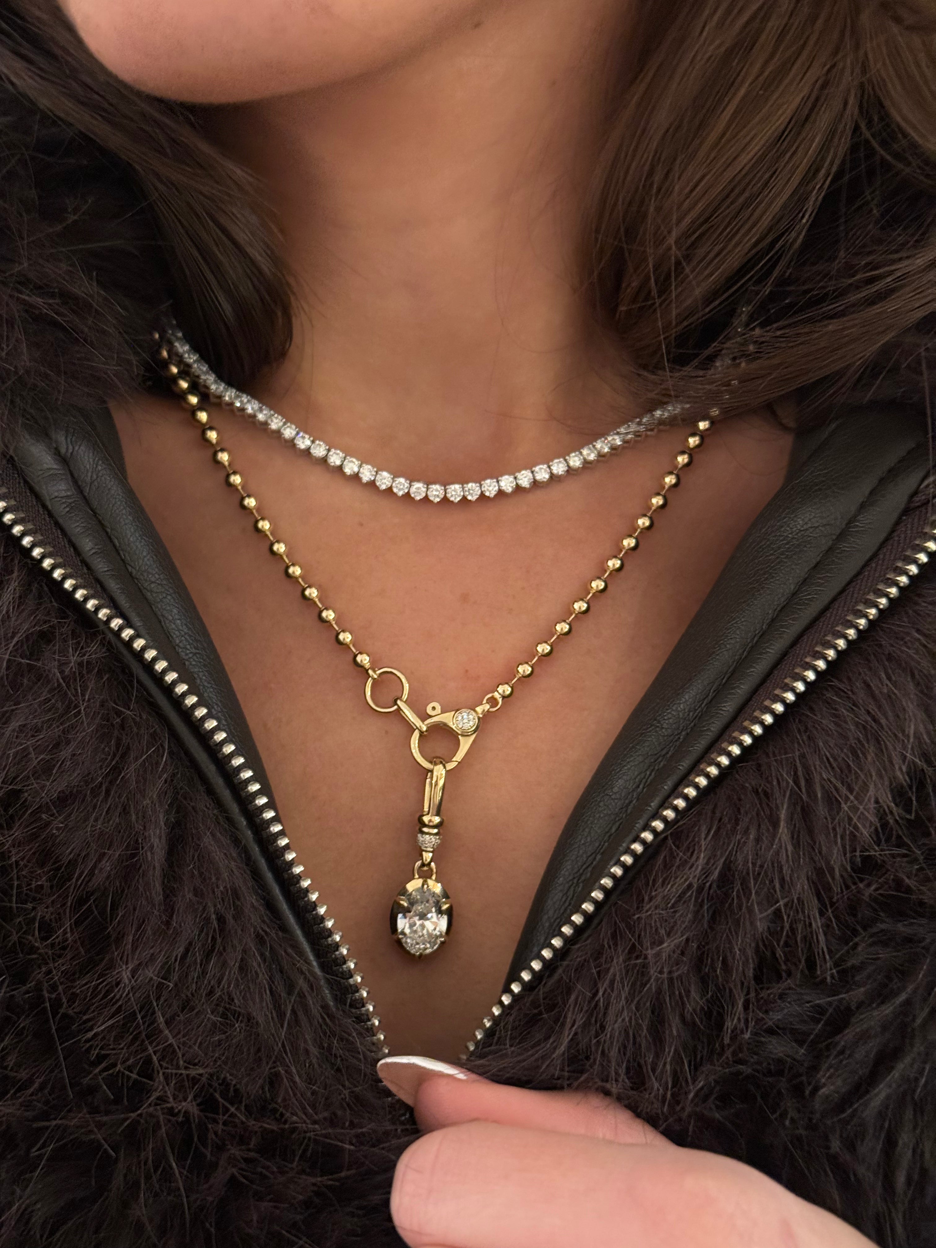 - 14k Options: 2mm Ball Chain (+$1,800), 3mm Ball Chain (+$3,300), 4mm Ball Chain with Diamond Clasp (+$4,900) (as seen on Kira Kirby). Please note all of these chains are 14k yellow, not gold plated.